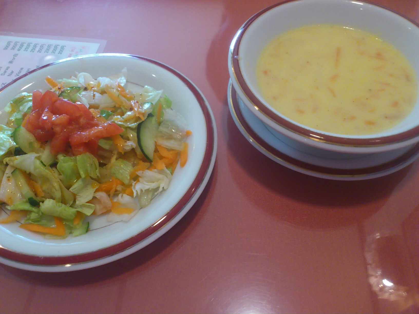 レンズ豆のスープがおいしー!突合せのバターのピラフもうめー!