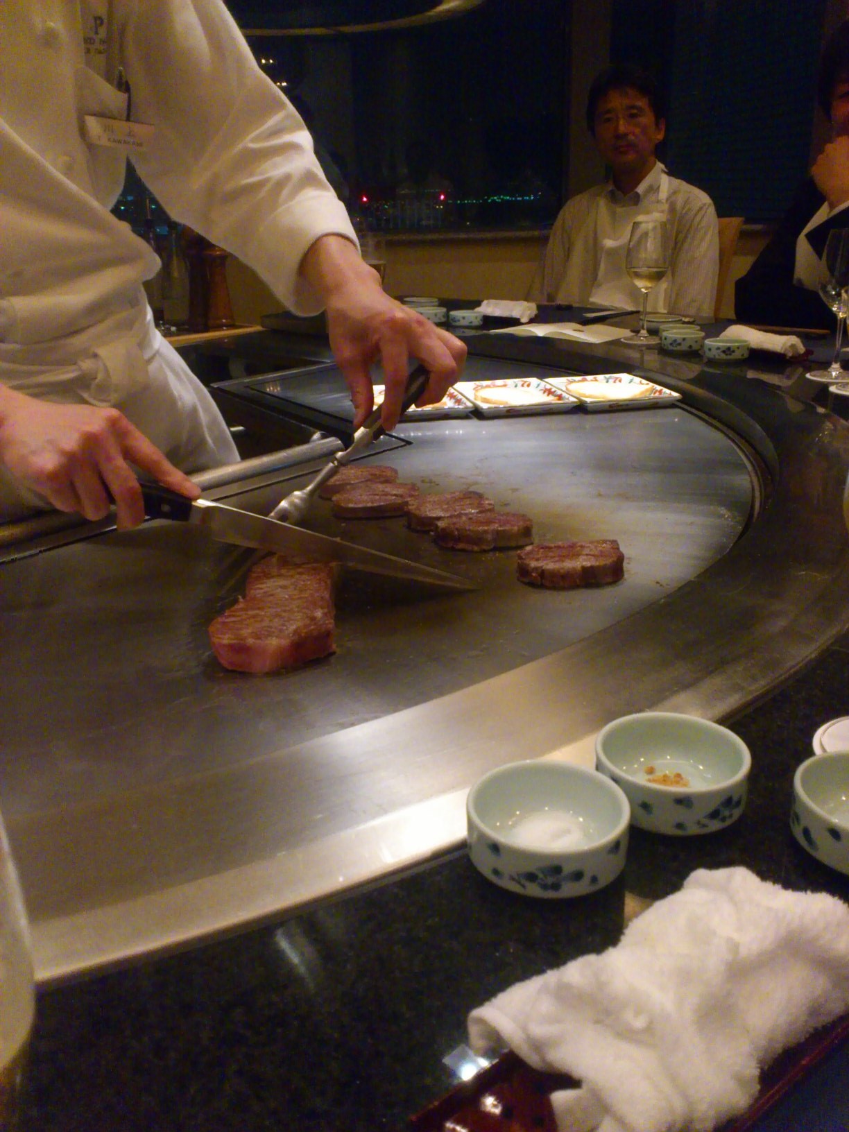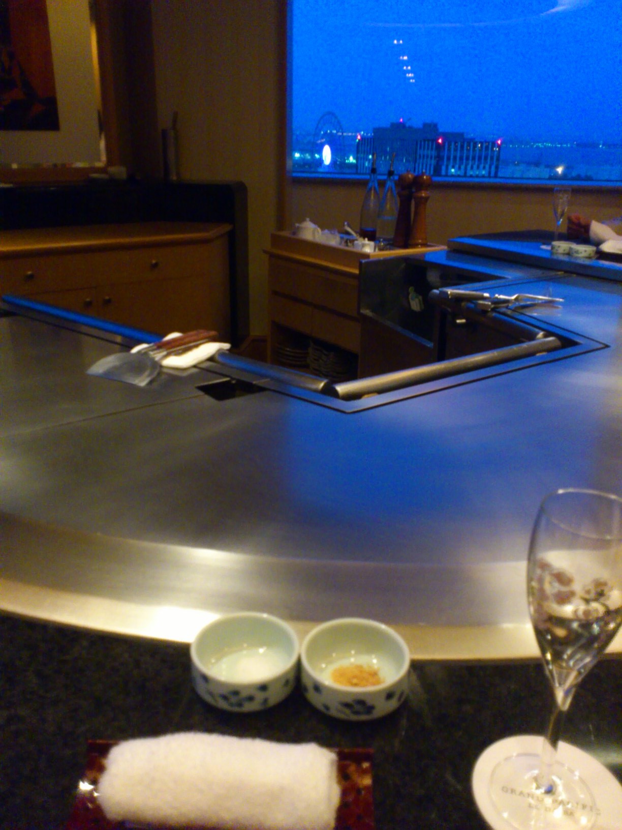 鉄板焼き。会社の送別会で。夜景が見えるムーディーな個室・・・